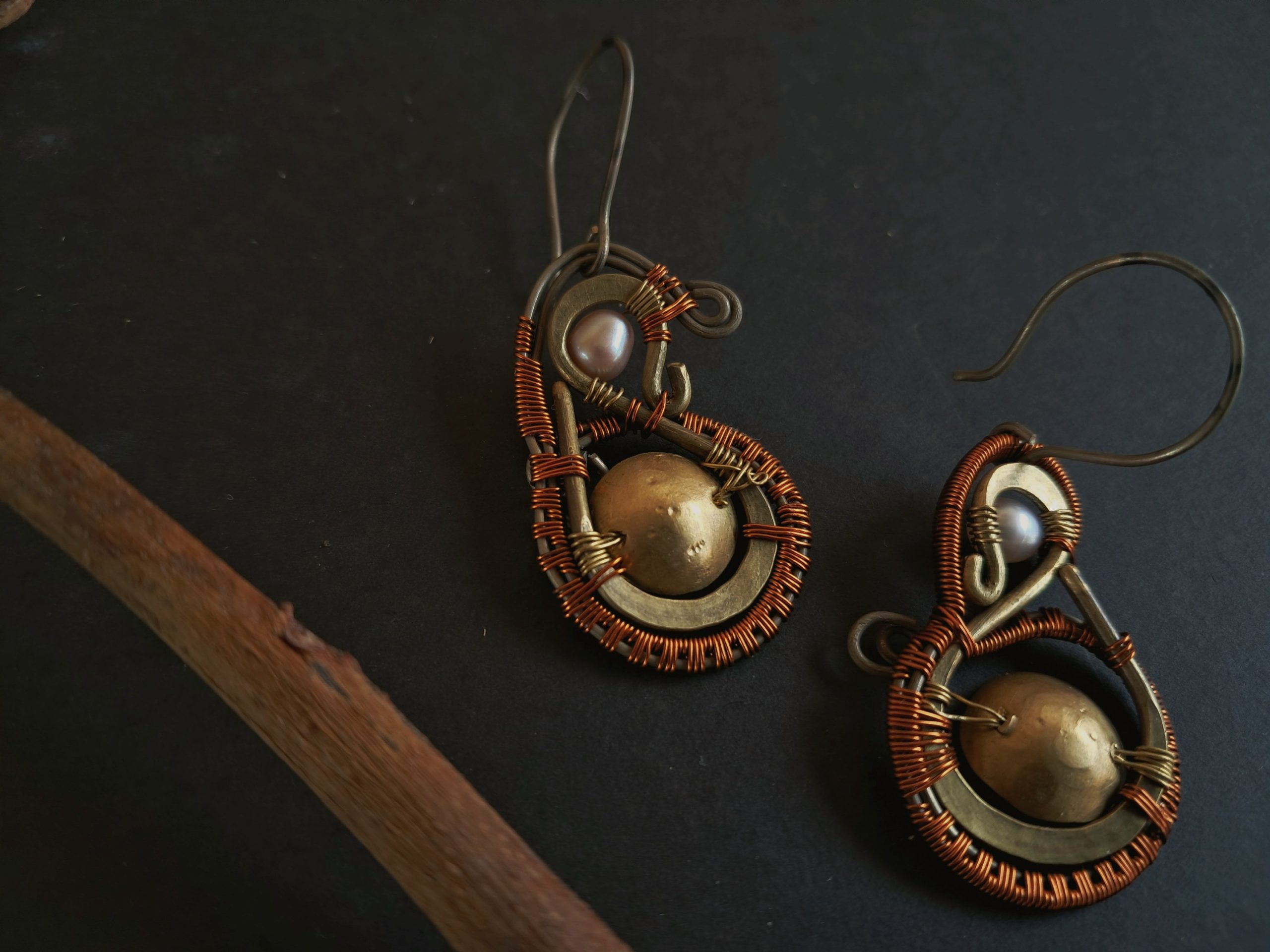 A Japanese term for light filtering through trees; the way the light hits the curved metal surfaces and the pearl reminds me of sunbeams hitting a forest floor.